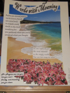 - Out of the words underlined, students make poems using the words in order located in text, and decorate the remainders of the page, using colors, images, and shapes that further emphasize the message of the poem they created.